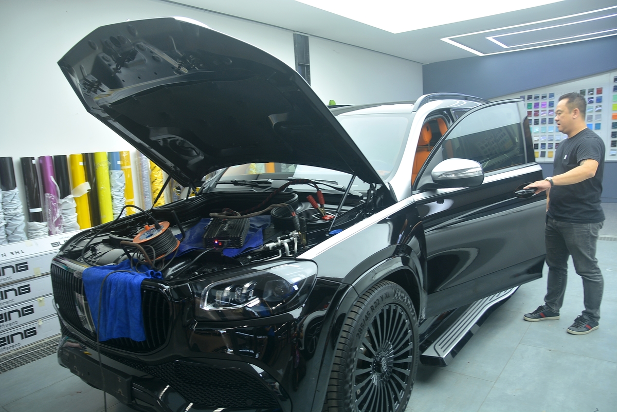 Nhiều chủ xe chi hàng tỷ đồng ra để làm đẹp cho "xế cưng" của mình. Đây là chiếc Mercedes GLS 450 đang được "dọn" nội thất để đón Tết. (Ảnh: Đại Việt)