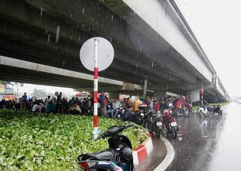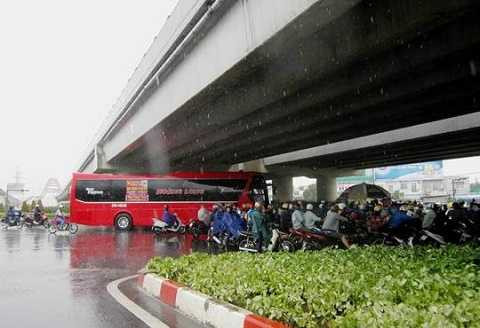 Theo ghi nhận ở khu vực gầm cầu vượt Tân Sơn Nhất - Bình Lợi - Vành đai ngoài, cầu vượt thép ngã tư Thủ Đức (quận Thủ Đức); cầu vượt Hàng Xanh (quận Bình Thạnh)…, nhiều người trú mưa vô tư đậu xe ở giữa lòng đường, có người để xe phía dưới rồi đứng hẳn lên khu vực trồng cây. Do cơn mưa đổ xuống vào giờ tan tầm đã khiến giao thông xung quanh những cây cầu này hết sức hỗn loạn.