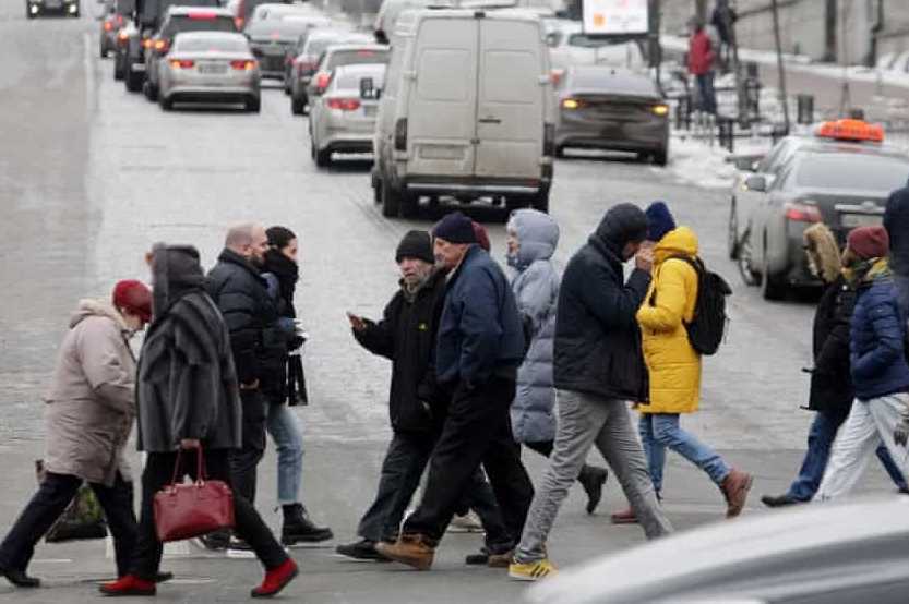Người dân đi lại trên một con phố ở Kiev. (Ảnh: Guardian)