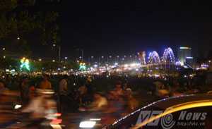 Tại nút giao thông Ngô Quyền- Cầu Rồng (quận Sơn Trà) tối 28/4, lượng người đổ dồn về xem Rồng phun lửa quá đông khiến nút giao thông này bị ùn ứ. Sự việc khiến nút giao thông này bị ùn ứ, đoàn xe chờ đi qua đây kéo dài hàng km.