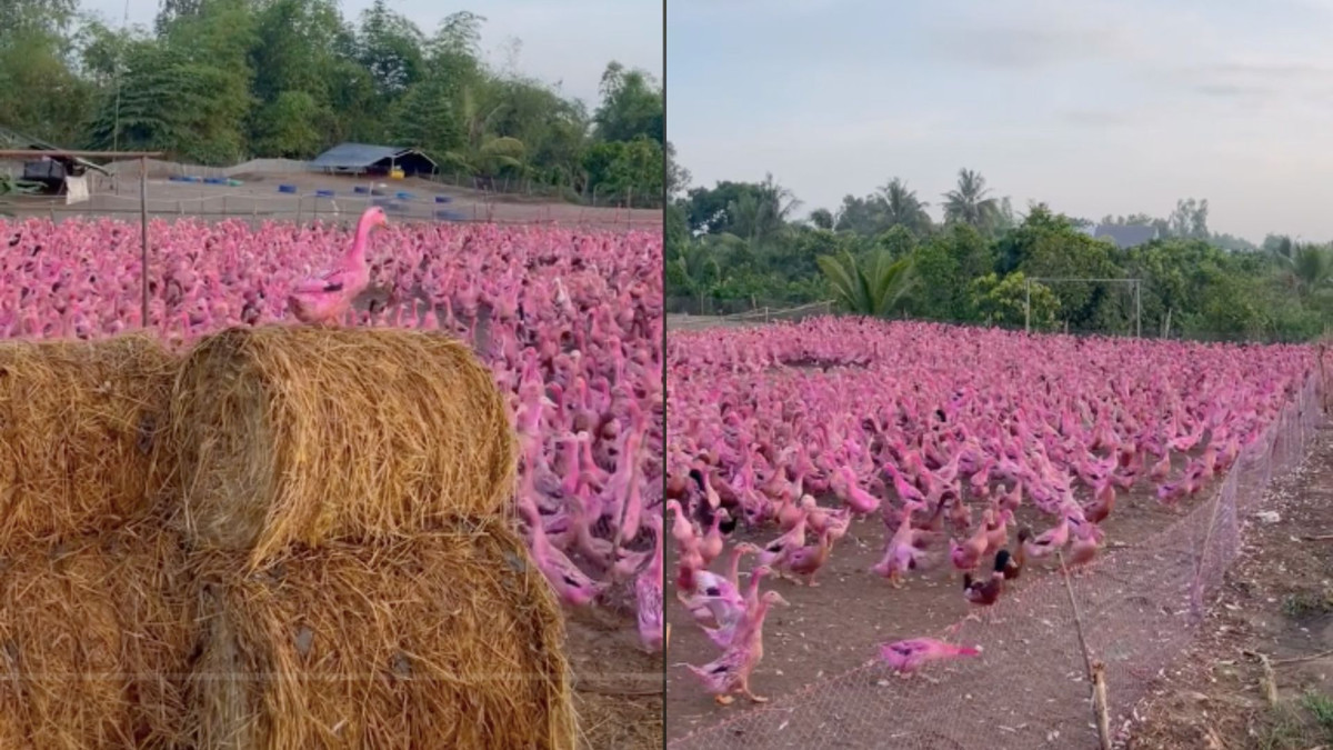 Trong clip được lan truyền mạnh trên mạng xã hội, đàn vịt màu hồng đang tung tăng bơi lội, làm rực rỡ cả một vùng không gian. Đoạn clip vỏn vẹn 22 giây với dòng mô tả "Độc lạ vịt màu hồng ở miền Tây” thu hút hơn 1,6 triệu lượt xem và được hơn 6.400 người chia sẻ.
