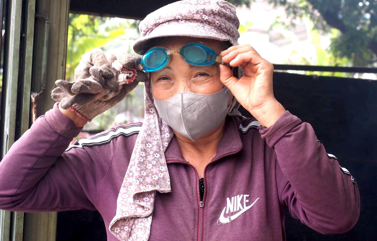 "Những ngày mưa phùn khói lắm, canh lửa hàng trăm nồi cá khiến mắt đau rát, thậm chí không mở được mắt. Vì vậy, người dân làng Vũ Đại chúng tôi nghĩ ra cách đeo kính bơi để ngăn sự tác động của khói trong thời gian dài", một người dân làng Vũ Đại nói.