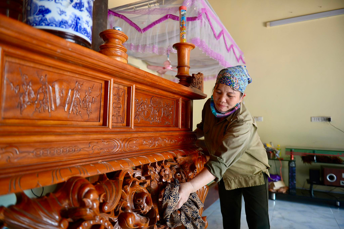 Theo chia sẻ của bà Vĩnh, dù mực nước đã giảm khá nhiều so với những ngày trước nhưng bà cũng chỉ lấy chổi quét bùn non ra khỏi nhà chứ chưa hạ đồ đạc xuống vì theo dự báo cuối tuần này miền Bắc hứng mưa lớn, bà lo sẽ lại có trận lụt mới.