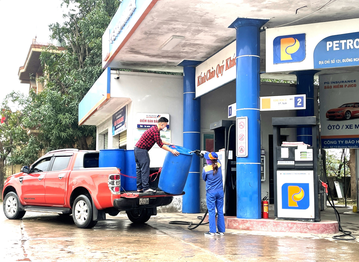 Một số người dân còn dùng ô tô tải chở nhiều thùng phuy cỡ lớn để đi mua xăng dầu.