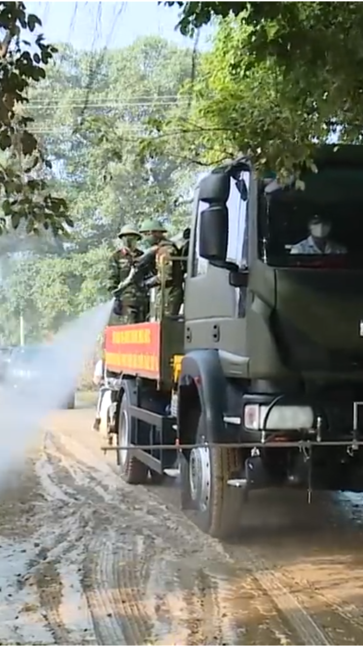 Dàn xe đặc chủng phun hóa chất 'tẩy độc' giữa biển bùn
