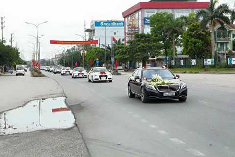 | Cuối tuần vừa qua, một đoàn xe sang tiền tỷ được trang trí hoa cưới bắt mắt lên đến hơn 60 chiếc, rồng rắn nối đuôi nhau trên các tuyến phố tại Hải Dương để tham dự buổi lễ đính hôn tại Quảng Ninh. |