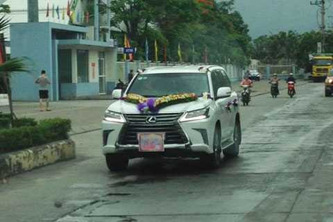 | SUV hạng sang Lexus LX570 2016 cũng góp mặt trong đòn xe dự lễ đính hôn, mẫu xe này có giá bán vào khoảng 5,6 tỷ đồng tại Việt Nam. |