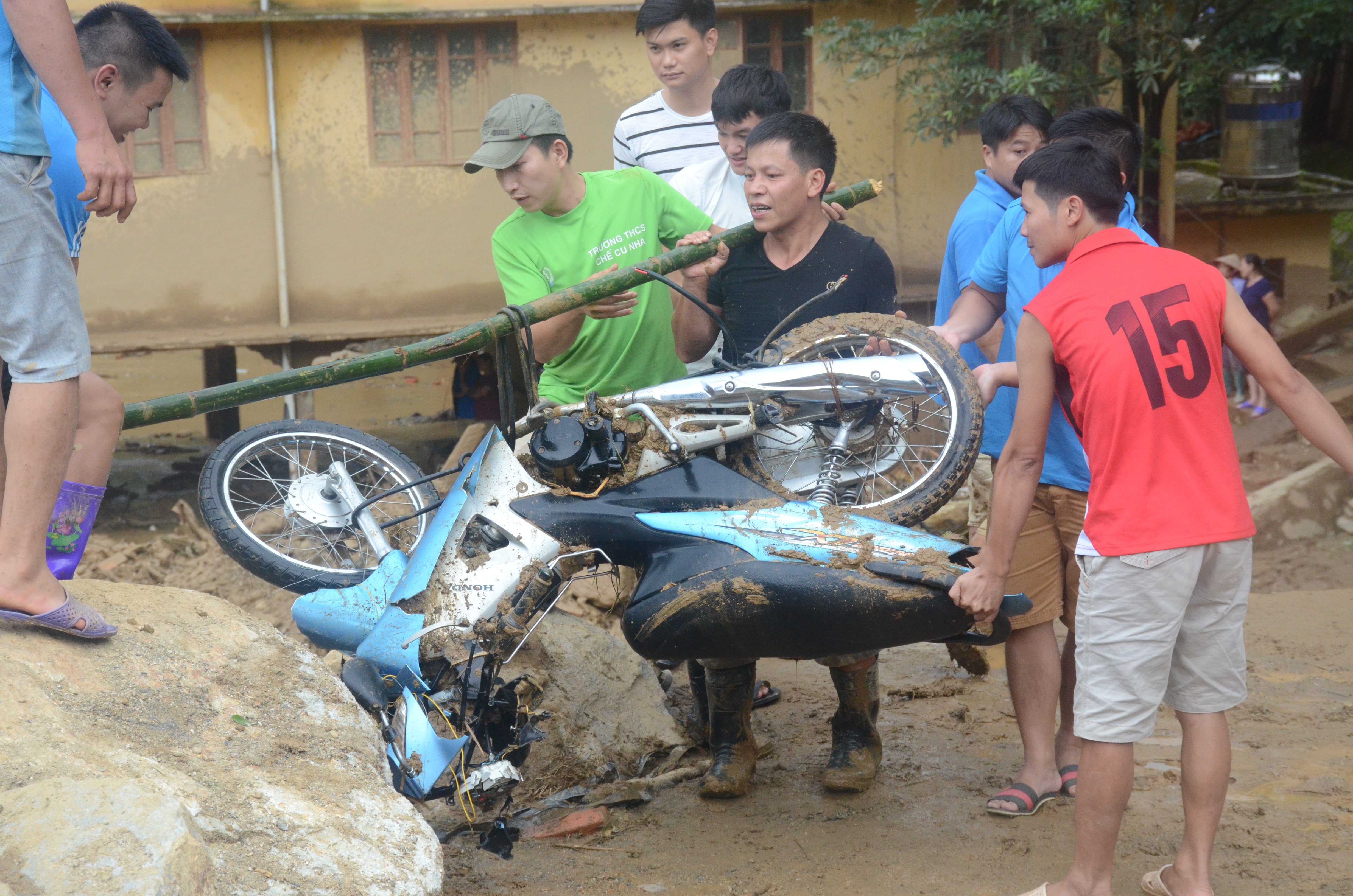 Cùng với đó, trận lũ đã cuốn trôi hàng chục ngôi nhà, hàng trăm chiếc xe máy, phương tiện đi lại và làm ăn duy nhất của người dân nơi đây.