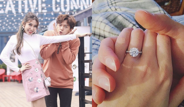 Hình ảnh bàn tay đeo nhẫn của Khổng Tú Quỳnh vừa được bạn trai chia sẻ trên mạng xã hội.