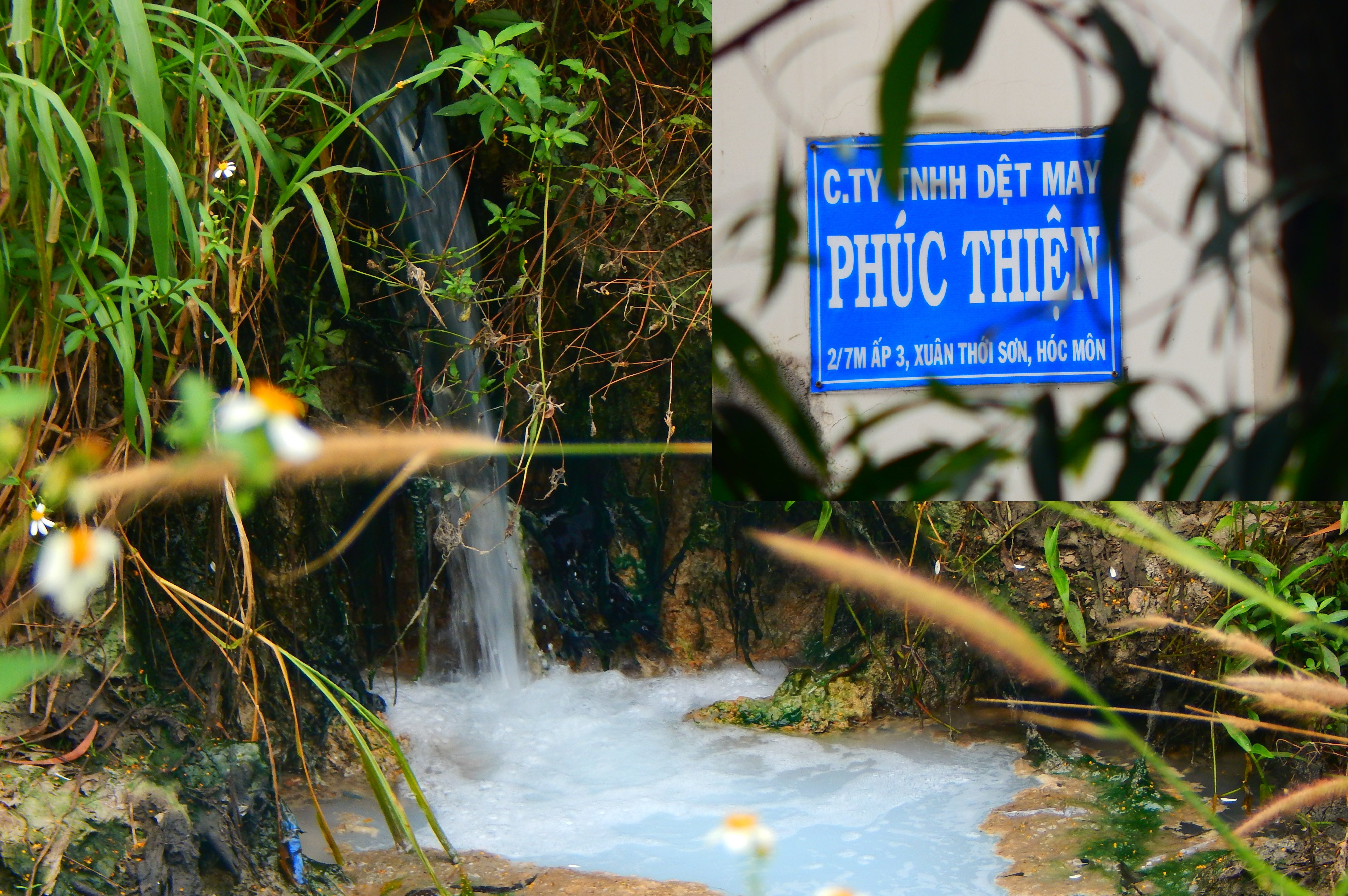 Khi quay lại kênh Bà Mẫn để tìm hiểu thêm, PV phát hiện cách đó không xa, một doanh nghiệp dệt may có tên Phúc Thiện, địa chỉ tại ấp 3 (xã Xuân Thới Sơn, huyện Hóc Môn) đang có hành vi tuồn nước thải ra môi trường.