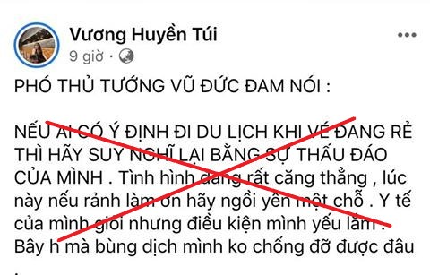 Nội dung tài khoản facebook Vương Huyền Túi đăng tải vào ngày 27/7.
