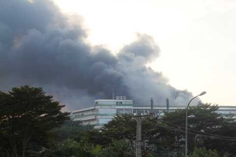 (VTC News) - Cột khói bốc cao nghi ngút hàng trăm mét, nhấn chìm KCN Pou Yuen, hàng chục xe chữa cháy và chiến sĩ PCCC đến dập lửa.