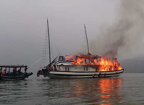 | Tàu du lịch chở 17 khách nước ngoài bị cháy trên Vịnh Hạ Long - Ảnh minh họa |