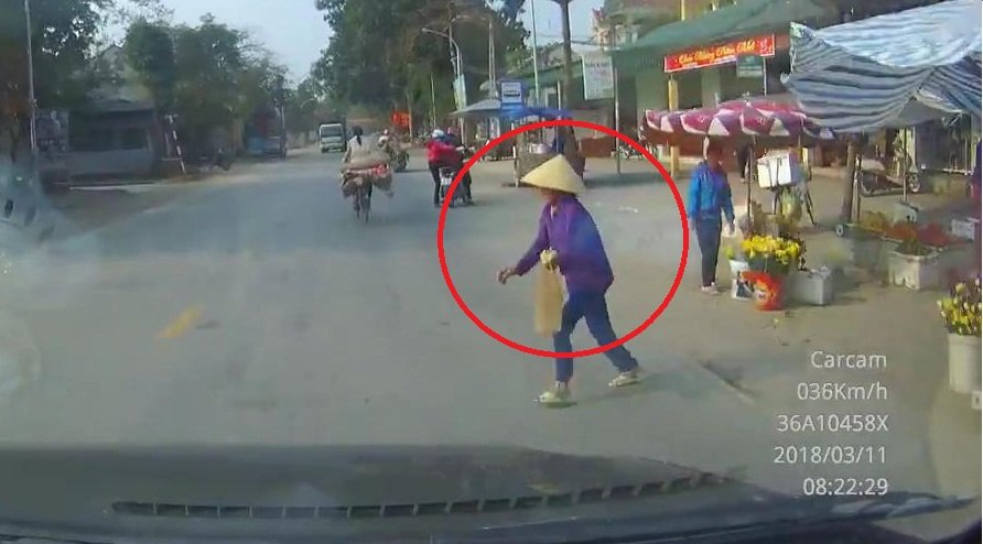 Clip do tài xế đăng tải trên một diễn đàn Facebook kèm mô tả: "Sang đường kiểu này con đến ạ cụ". Bên cạnh nhiều ý kiến đồng tình rằng người phụ nữ lao sang đường quá ẩu, rất nhiều người cũng cho rằng tài xế đi với tốc độ quá cao trong khu vực dân sinh.