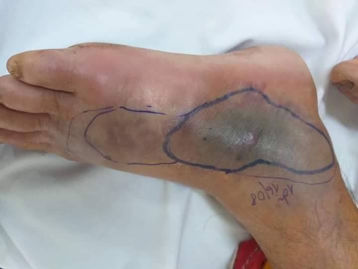 Nọc độc rắn phát tác khiến bàn chân ông Tuế bị hoại tử.