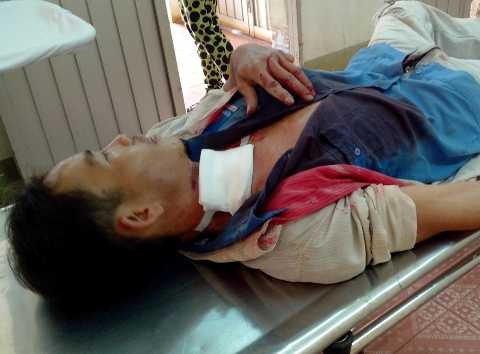 Do vết cắt đã ăn sâu vào cổ họng, các bác sĩ Trung tâm Y tế huyện Châu Đức đã không thể khâu ngay vết thương cho cha con anh Vũ, mà phải làm thủ tục để chuyển cấp cứu lên bệnh viện tuyến.