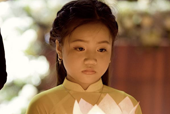"Một cô bé chừng gần 5 tuổi mặc áo nâu, váy đụp, khăn vấn và hát những câu hát xẩm. Phản ứng đầu tiên của tôi là phì cười vì trông con rất ngộ nghĩnh, thấy vui vì sự xuất hiện của con", anh chia sẻ.