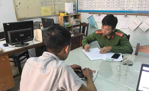 Anh Trần Văn Quyên trình bày sự việc tại Công an phường Xuân Hà, quận Thanh Khê, Đà Nẵng. (Ảnh: H.Hiệp)