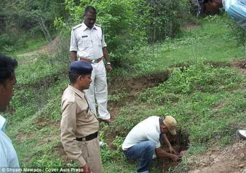 Đứa trẻ xấu số được phát hiện được gói trong một túi vải và chôn ở dưới đất, xung quanh phủ đầy cỏ cây, tại khu rừng Mandleshwar, ngoại ô thành phố Indore của Ấn Độ.