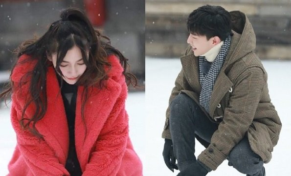 Mặc dù đang là những diễn viên nổi tiếng của màn ảnh Hoa ngữ nhưng khi thấy tuyết rơi, Đặng Luân hay Angela Baby cũng không giấu được sự phấn khích.