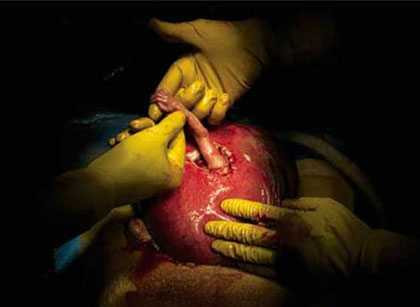 Trong quá trình phẫu thuật, tử cung đột nhiên xuất hiện một cánh tay nhỏ bé của thai nhi, cánh tay ấy nắm chặt lấy ngón tay của vị bác sĩ.