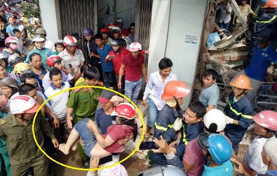 Ngay sau khi tai nạn xảy ra, lực lượng chức năng đã có mặt tại hiện trường. Đến khoảng 13h30 cùng ngày, lực lượng chức năng mới đưa được chị Nguyễn Thị Nhung ra khỏi đống đổ nát. Hiện chị Nhung đã được chuyển vào bệnh viện trong tình trạng bị thương khá nặng.