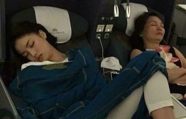 Khán giả dễ dàng nhận ra hình ảnh được chụp trên khoang khách hạng thương gia, Kỳ Duyên và mẹ cô đang nằm ngủ ngay bên cạnh. Hình ảnh này nhanh chóng nhận được những phản hồi trái chiều.