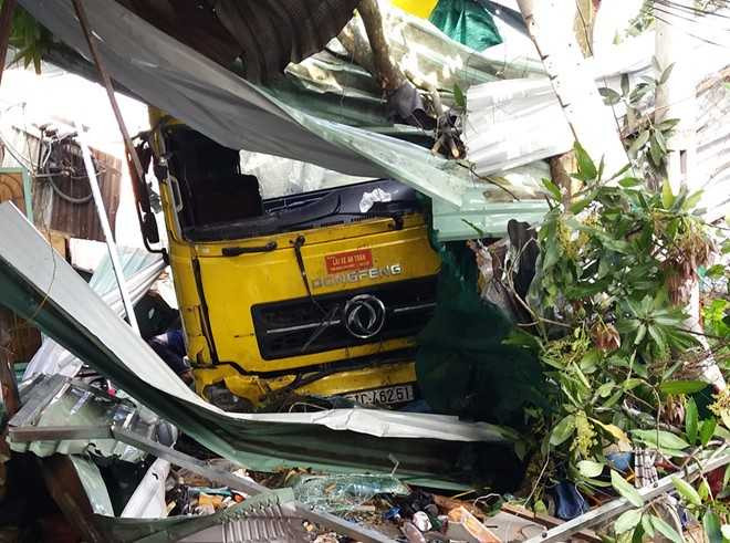 "Vợ chồng tôi chạy ra thì thấy xe tải tông sập phía trước của 3 căn nhà. Tông đến nhà tôi thì xe dừng lại và con dâu với cháu nội tôi tử nạn. Chồng của Ngân bị thương ở chân", ông Hồng kể.