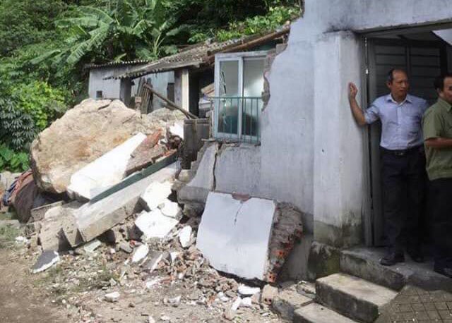 Tảng đá sạt trượt rơi xuống nhà dân khiến 1 người thiệt mạng.