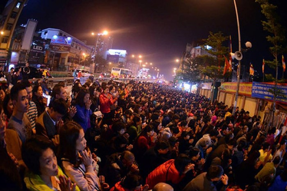 Hàng chục ngàn người dự lễ dâng sao giải hạn tại chùa Phúc Khánh, Hà Nội. (Ảnh: Người Lao Động)