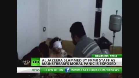 | Video quay trong một bệnh viện ở Homs với sự xuất hiện của một đội phóng viên Al Jazeera, cố gắng lèo lái để cô bé bị thương nói ra câu: "Thượng đế sẽ trừng phạt Bashar Al-Assad" |