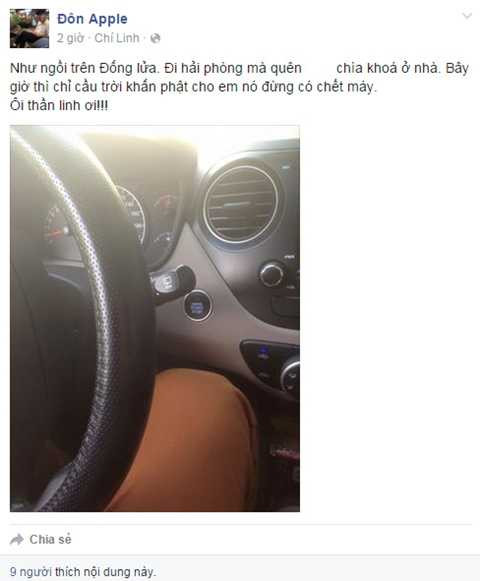 Như trường hợp một lái xe lên Facebook than thở rằng anh lên xe nổ máy nhưng đưa cả chùm chìa khóa cho ai đó (để mở cửa nhà chẳng hạn) và cứ thế lái xe đi làm. Tình huống này là hy hữu, nhưng lỡ đi quá xa thì phải cố gắng tránh bị hết xăng hoặc tắt máy.