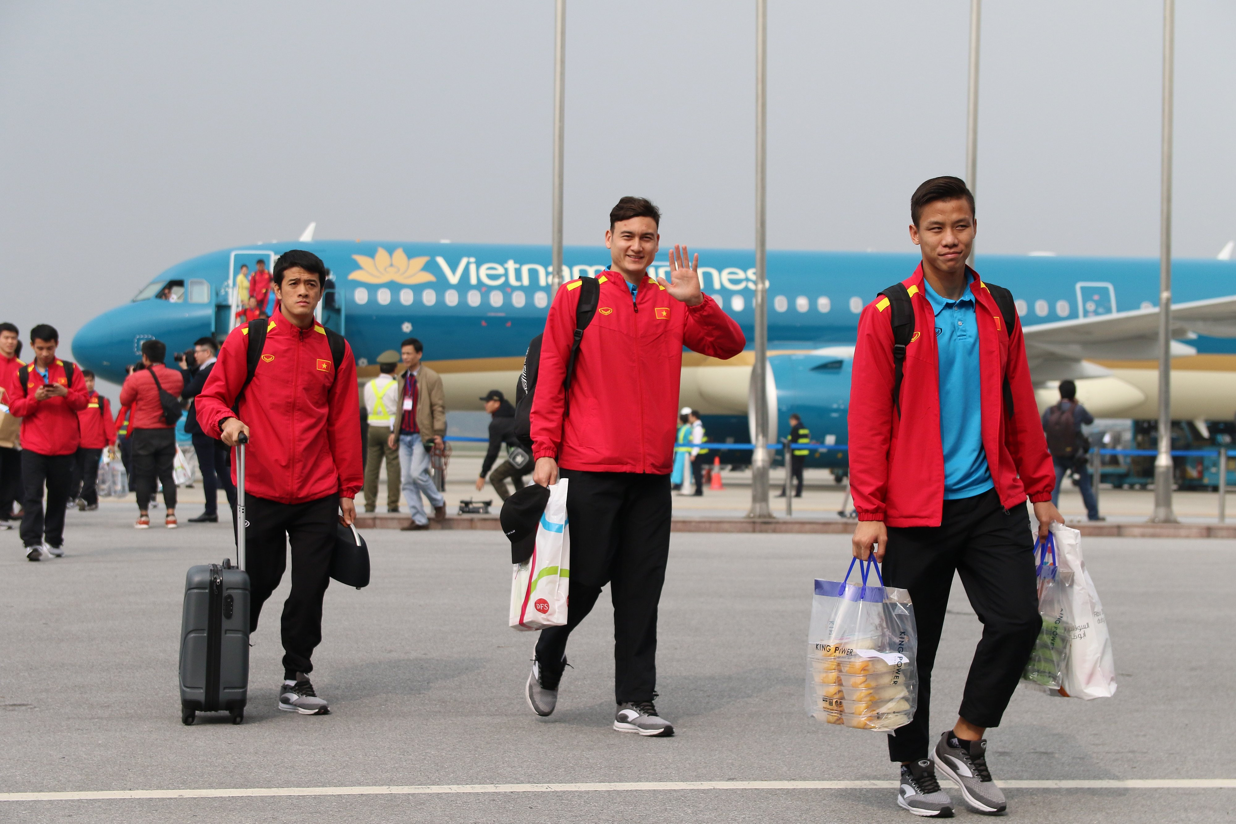 "Hôm nay toàn đội có 1 chuyến bay rất mệt mỏi, nhưng rất hạnh phúc khi được tiếp đón như vậy", Đặng Văn Lâm nói.