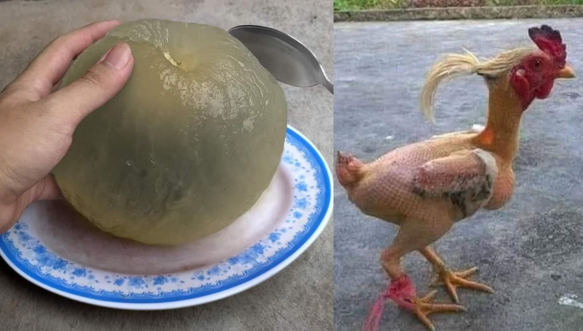 Chú gà bị lột trần như nhộng.