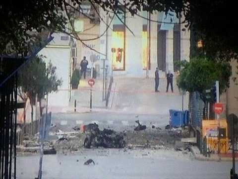 | Hiện trường một vụ nổ bom ở Athens hồi tháng 4/2014 |