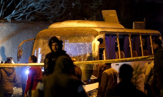 Một nguồn tin an ninh Ai Cập nói với The Guardian rằng có tổng cộng 16 người trên xe và quả bom phát nổ khi chiếc xe buýt đến gần. Reuters cho biết thiết bị nổ được giấu gần một bức tường trên đường Marioutiya ở ngoại ô Cairo, cách kim tự tháp Giza khoảng 4 km.