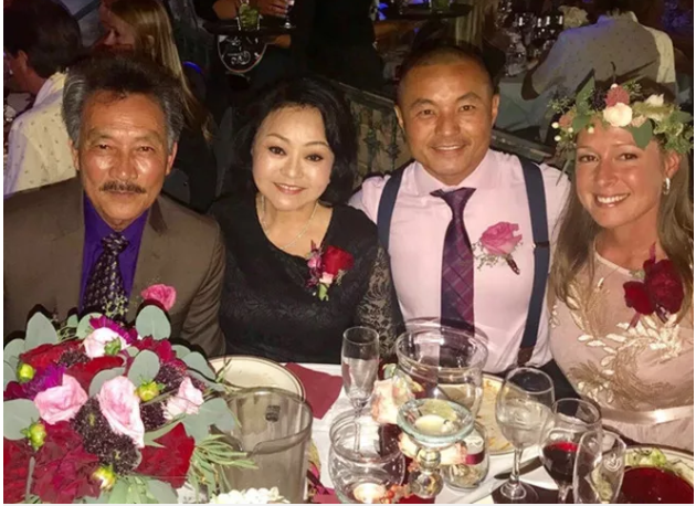 Vợ chồng danh ca Hương Lan trong đám cưới người con trai cả.