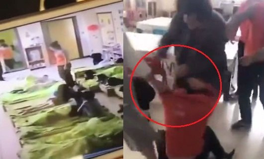 Ngay lập tức, người mẹ tới trường yêu cầu kiểm tra camera giám sát. Băng ghi hình cho thấy 2 nữ giáo viên mầm non đá và ném trẻ một cách thô bạo. Quá phẫn nộ, mẹ bé gái lao vào túm tóc, kéo lê và đá liên tiếp vào mặt nữ giáo viên bạo hành con mình.