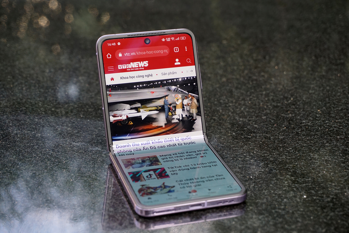 Ở dạng mở toàn màn hình, kích thước bề ngang lớn (6,8 inch) lại giúp Find N2 Flip nhìn cân đối hơn Galaxy Z Flip - thiết bị sở hữu dáng "thon gầy" khiến cảm giác không gian hiển thị bị dài không cần thiết.