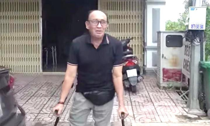 Danh hài Duy Phương bị tai nạn gặp khó khăn trong việc đi lại.