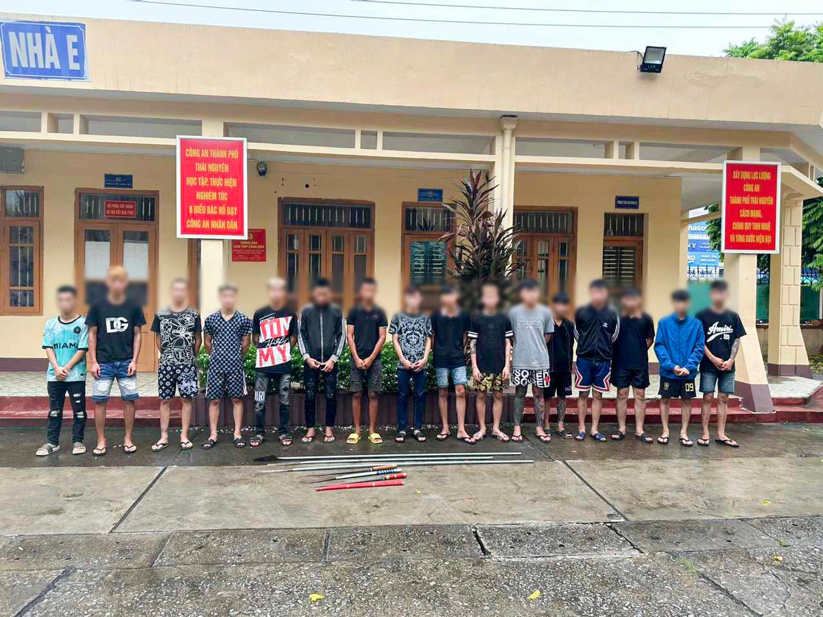 Nhóm thanh thiếu niên cùng hung khí bị Công an TP Thái Nguyên triệu tập.
