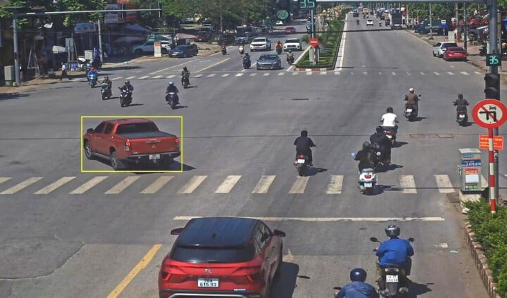 Xe ô tô rẽ trái tại nơi có biển báo hiệu có nội dung cấm rẽ tại Ngã 4 Xương Giang - Quang Trung, TP Bắc Giang. (Ảnh: Công an Bắc Giang)