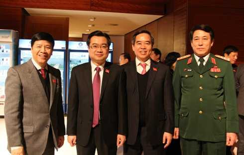 | Ông Nguyễn Thanh Nghị và ông Nguyễn Văn Bình (giữa) tái cử Ủy viên Ban Chấp hành Trung ương khóa XII. (Ảnh: Quang Tùng) |