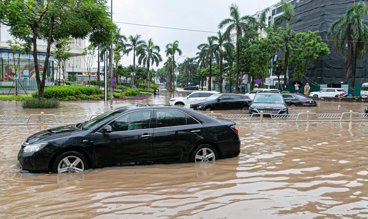 Đến 14h trên địa bàn Hà Nội vẫn xuất hiện điểm úng ngập, ứ đọng nước, giao thông đi lại khó khăn.