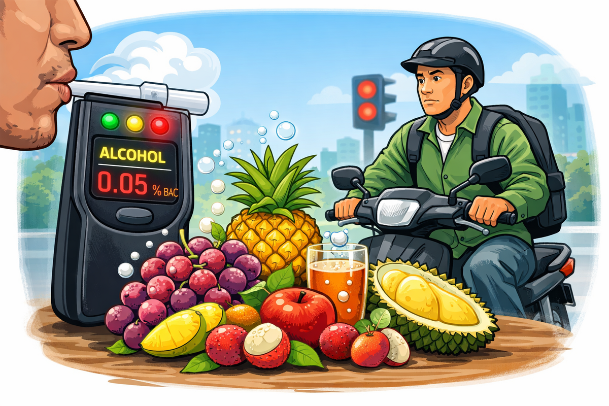 Trong bối cảnh Nghị định quy định xử phạt vi phạm nồng độ cồn đang được thi hành nghiêm ngặt, nhất là đợt Tết Nguyên đán sắp tới, nhiều người dân băn khoăn: có phải ăn trái cây chín hoặc uống nước hoa quả lên men cũng có thể khiến máy đo nồng độ cồn “báo có cồn” và bị xử phạt?