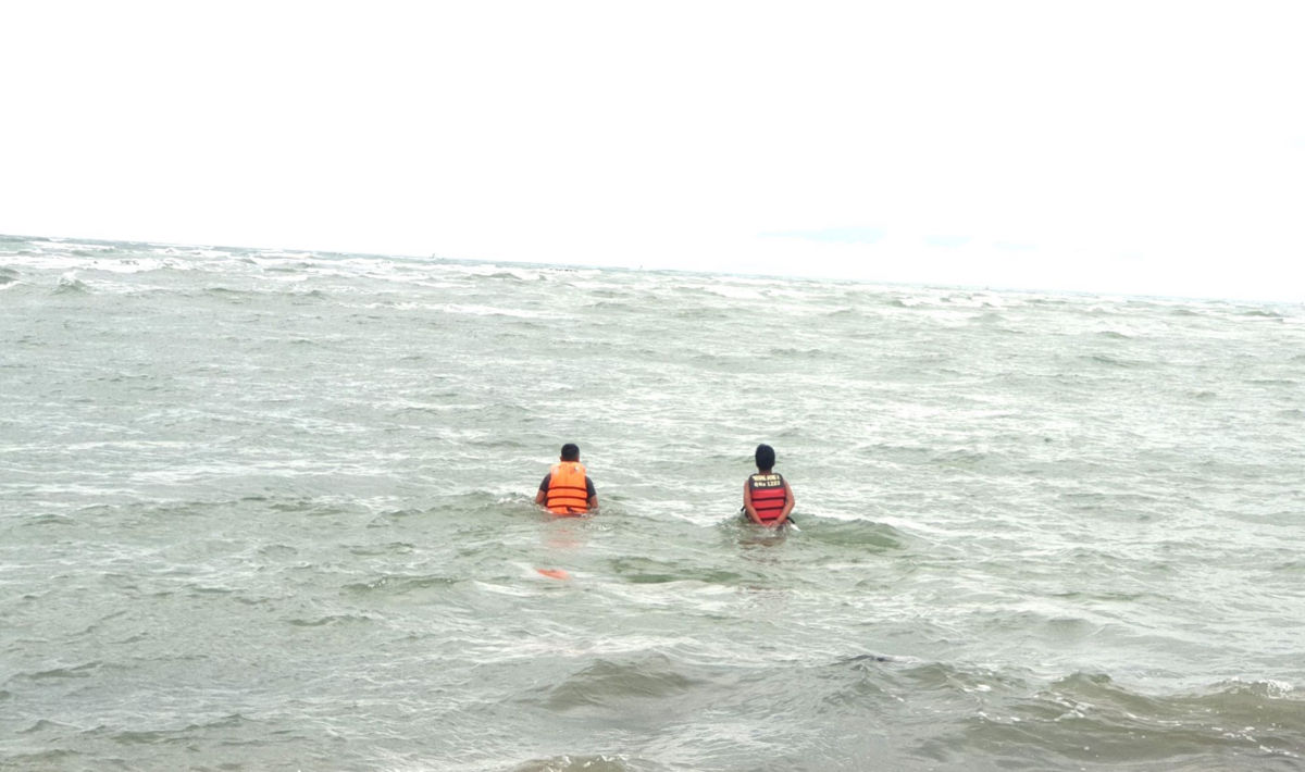 Lực lượng chức năng tìm kiếm nạn nhân vụ lật ca nô trên vùng biển Cửa Đại, Quảng Nam.