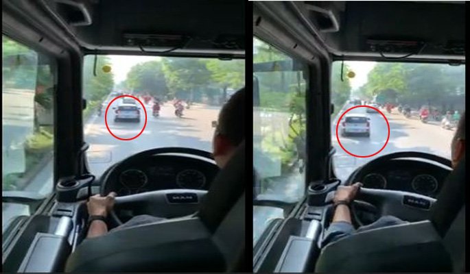 Sau đó, lực lượng chức năng phát loa "Yêu cầu ô tô giảm tốc độ, đi gọn tay phải của mình đi", tuy nhiên tài xế vẫn không nhường đường.