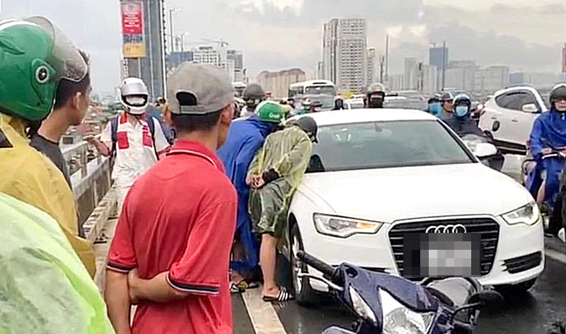 Trước đó, khoảng 17h10 ngày 10/8, người dân thấy một chiếc xe ô tô Audi màu trắng biển kiểm soát 30H – 151.XX đỗ trên cầu Nhật Tân theo hướng từ nội thành sang huyện Đông Anh.