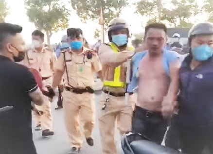 Tài xế Tuấn bị lực lượng công an khống chế. (Ảnh cắt từ clip)
