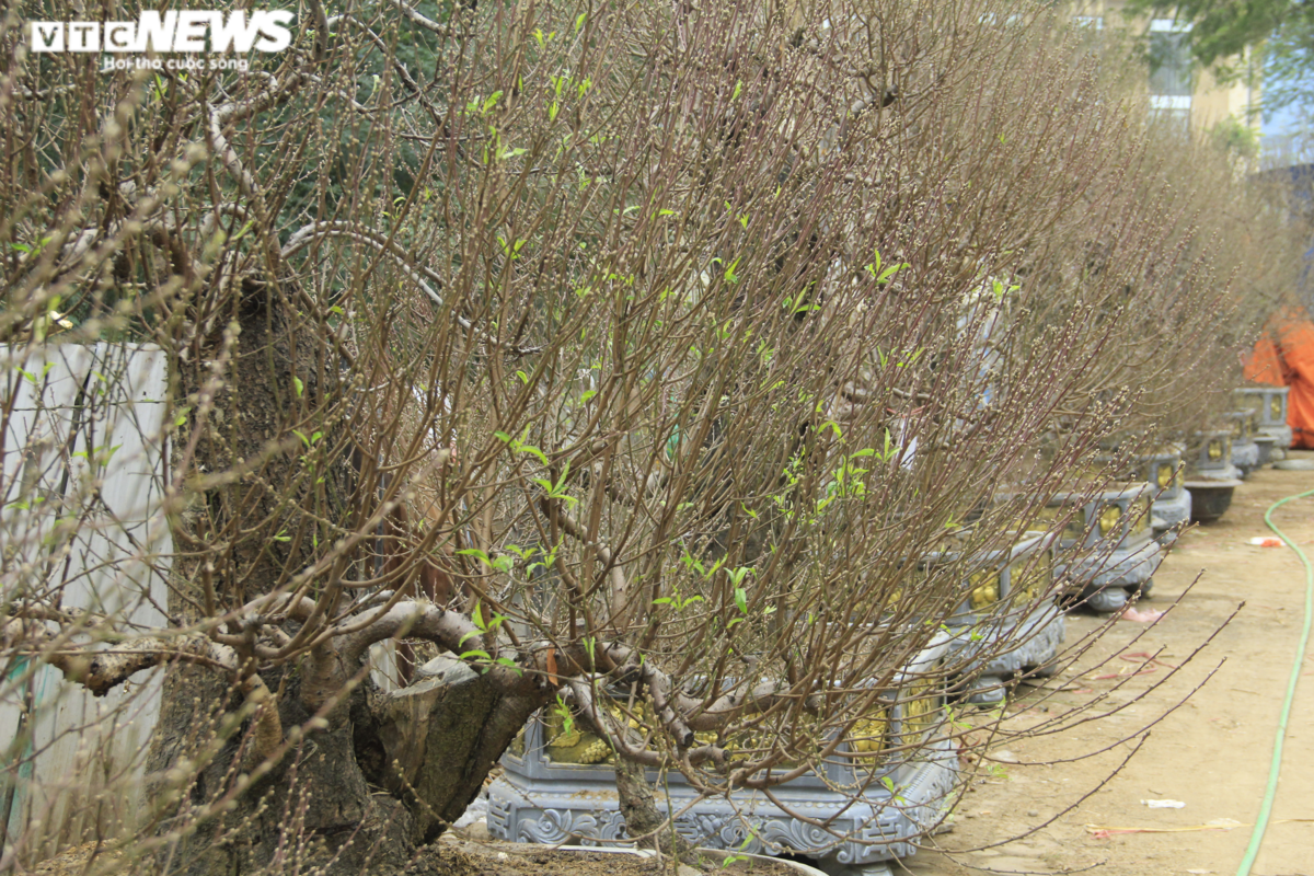 "Loại đào thế cổ này có nguồn gốc từ Lai Châu, Sơn La được mang về trồng, chủ yếu đến Tết đem ra cho thuê rồi sau Tết lại mang về chăm sóc", anh Hoàn cho hay.